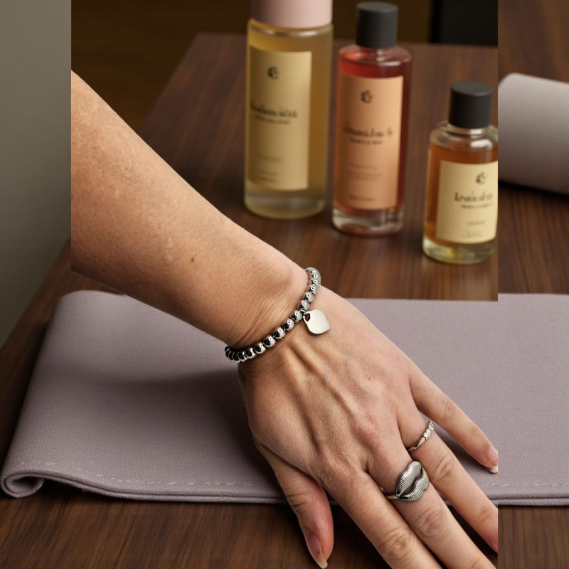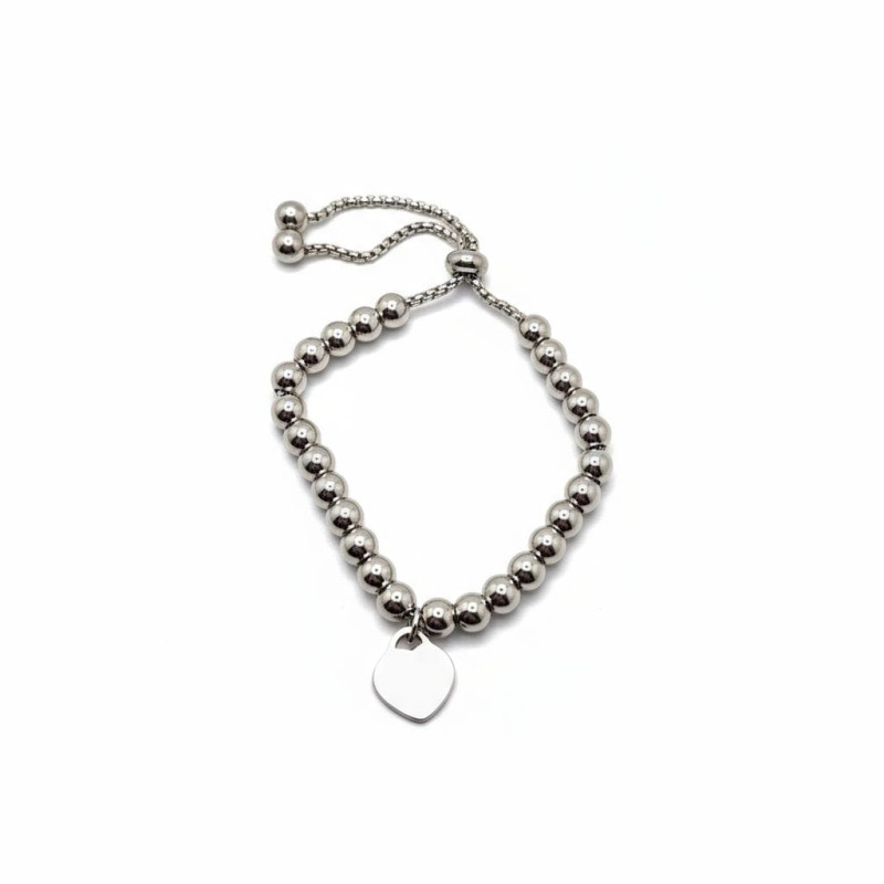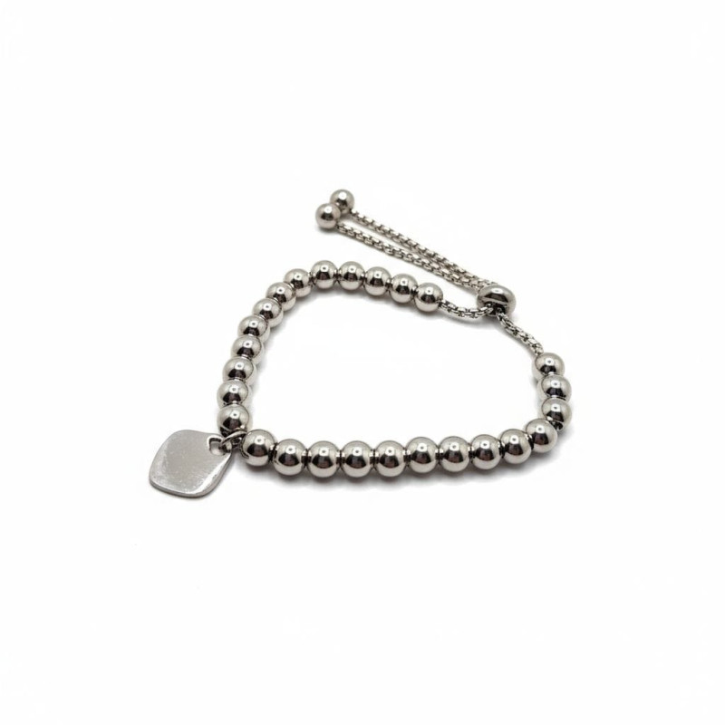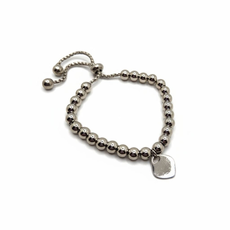 The Celeste Heart Bracelet reflects a cool, modern elegance with its sleek silver-tone stainless steel beads and polished heart charm. Designed for versatility and everyday wear, it shines with a subtle glow that complements any style. The adjustable sliding clasp ensures a perfect fit, offering both comfort and sophistication in one timeless design.