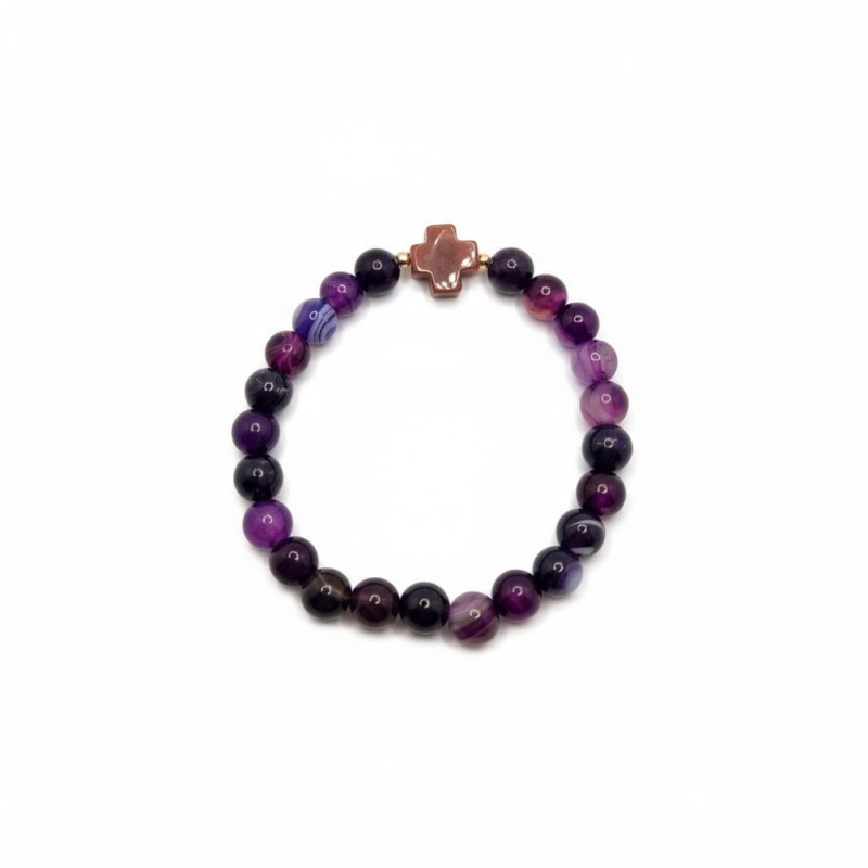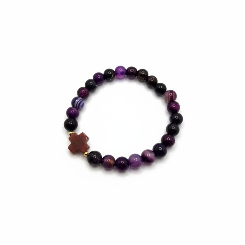 Crown of Faith Bracelet - 8 mm Purple Lace Agate with Red Jasper Cross