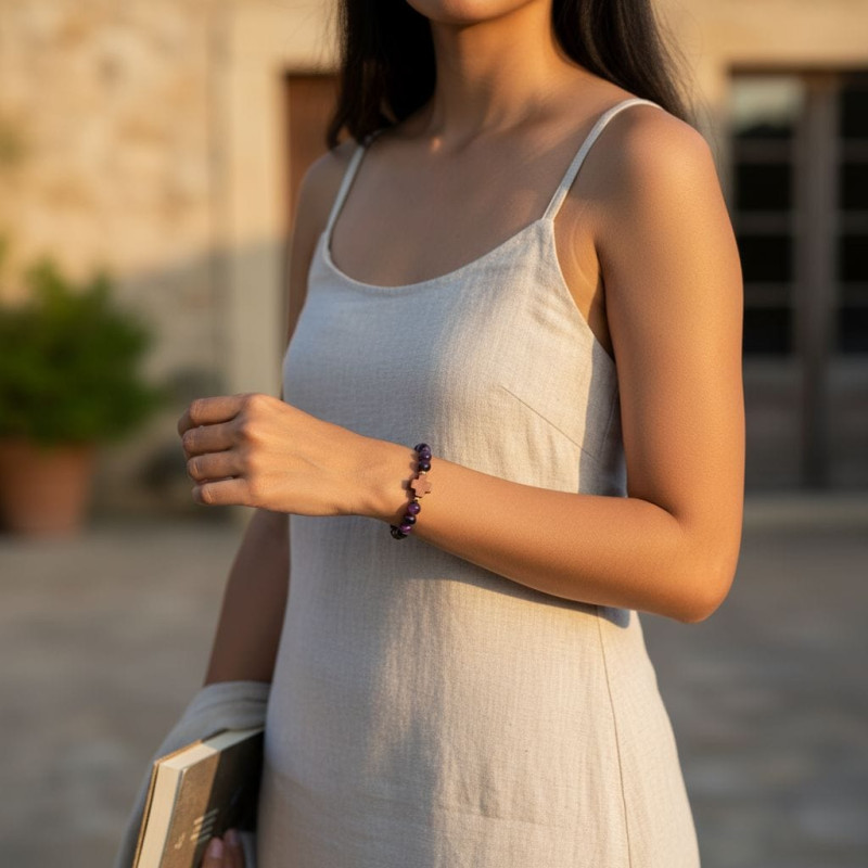 Together, these stones remind you that true strength is found in stillness, and victory is found through faith. Just as the colors of heaven and earth meet in harmony, your heart is crowned with divine protection and grace.