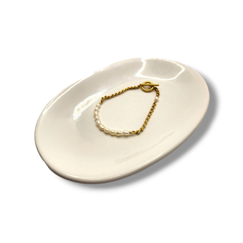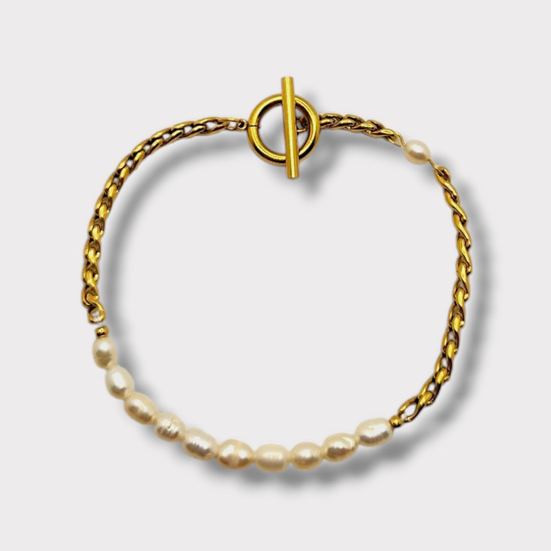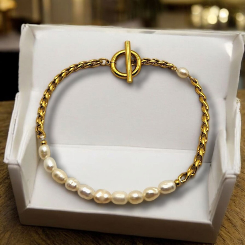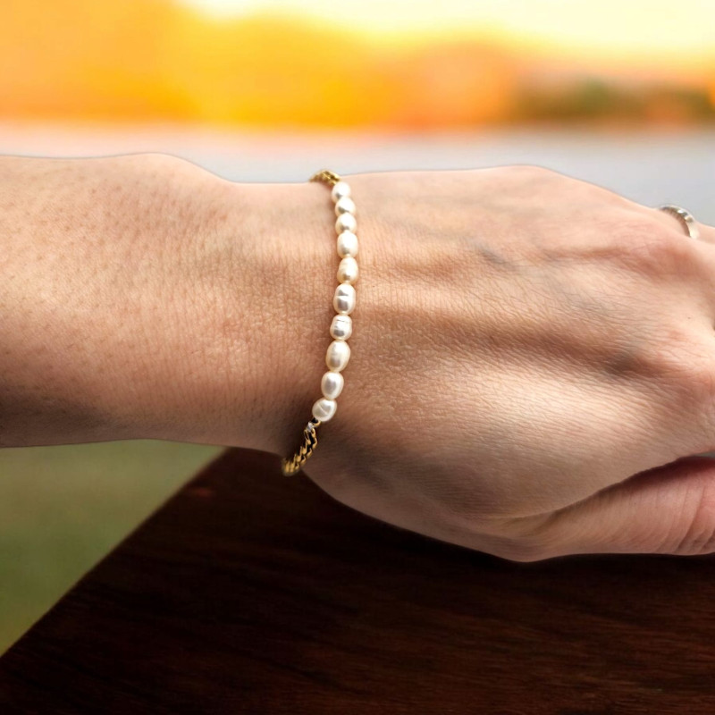 The Dainty Pearl Twist Bracelet is a delicate and charming piece that features small Freshwater Pearls elegantly intertwined with a gold rope chain. The bracelet's refined design showcases the natural beauty of the pearls, complemented by the intricate twist of the chain, adding a touch of sophistication. With a secure clasp for ease of wear, this bracelet is perfect for layering with other pieces or wearing alone for a subtle statement. Ideal for any occasion, the Dainty Pearl Twist Bracelet embodies timeless elegance and effortless style.