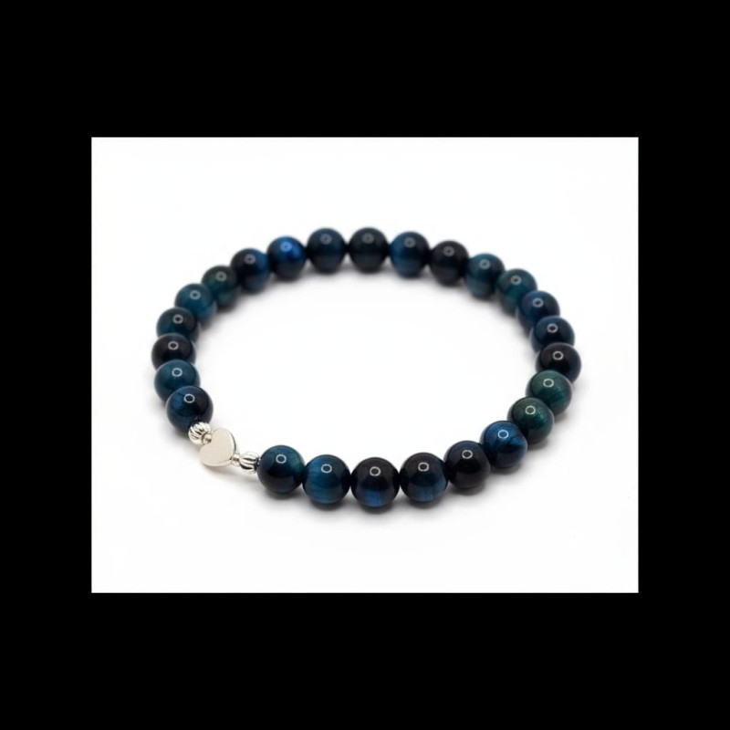 Divine Heart Bracelet Blue Tiger Eye 8 mm, shell