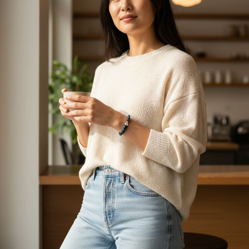 The Divine Heart Bracelet is a graceful reminder of God’s unwavering love and guidance. Featuring 8 mm Blue Tiger Eye beads, known for courage, clarity, and spiritual focus, this bracelet inspires confidence rooted in faith. At its center sits a heart-shaped Mother of Pearl bead, symbolizing purity, devotion, and a heart aligned with God’s will. Two silver-tone Stainless Steel accents frame the centerpiece, reflecting His light and constant presence in your life.