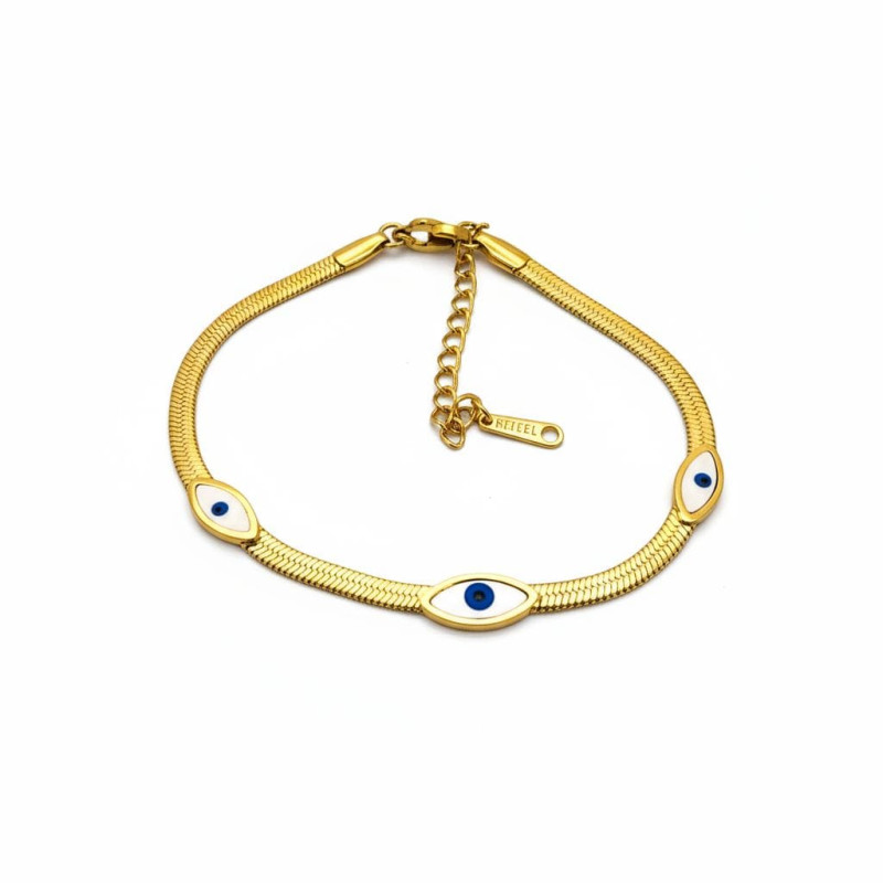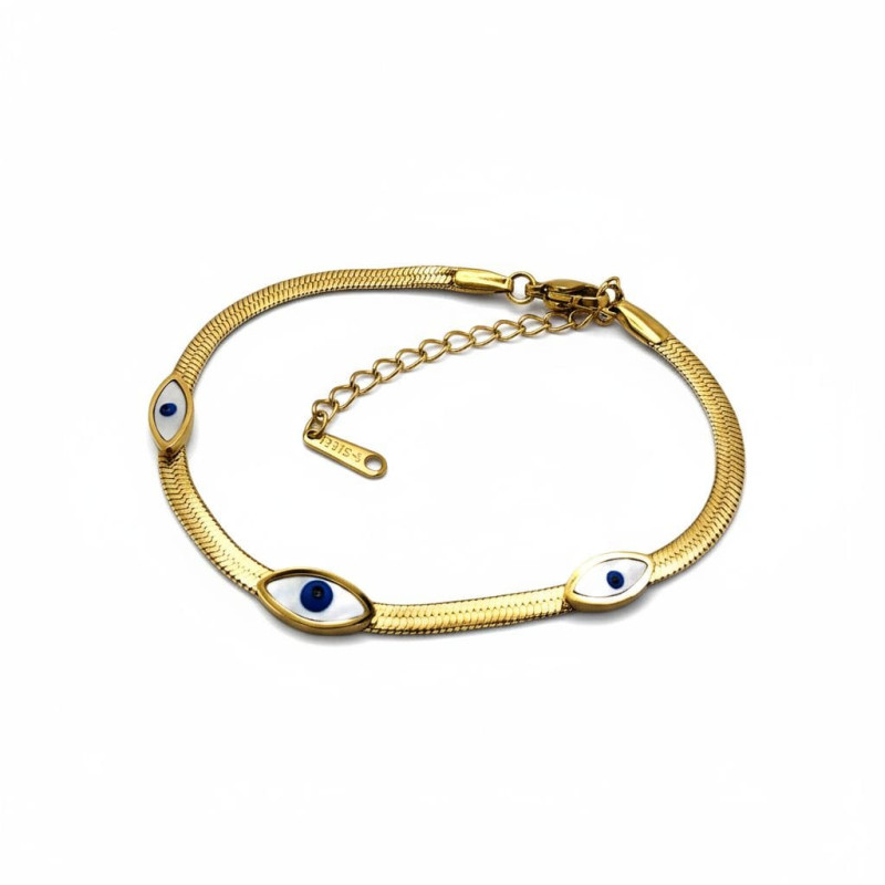 Divine Protection Bracelet - Herringbone chain with 3 Divine Eyes