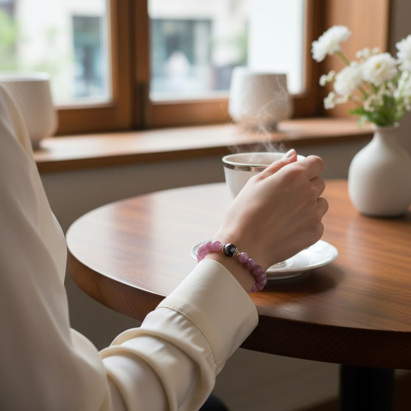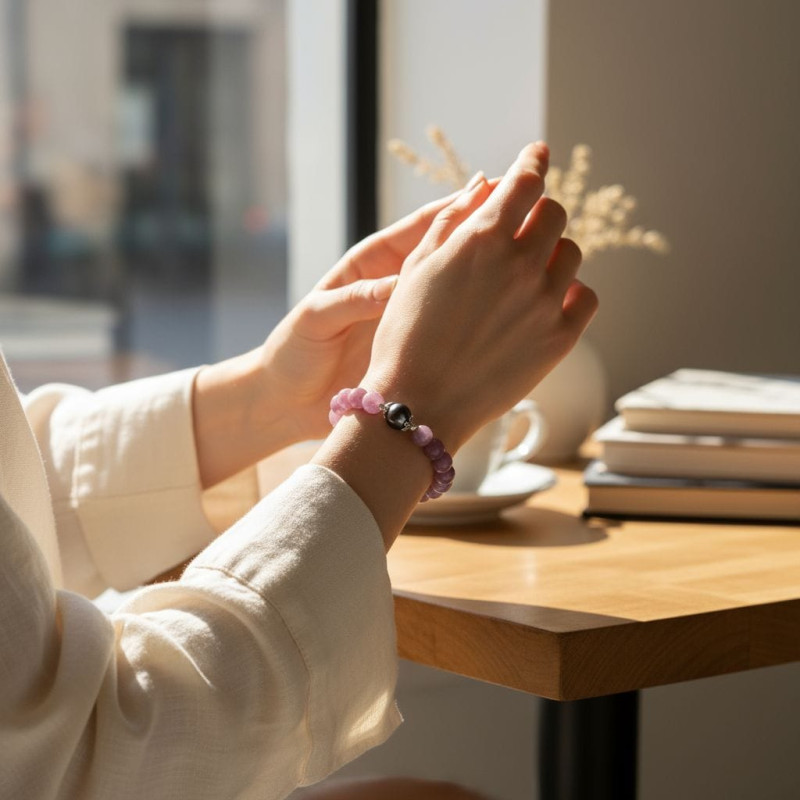 The Divine Serenity Bracelet embodies a peaceful balance between strength and grace — a reflection of faith that endures through every season. Handcrafted with 8 mm Kunzite stones, known for their gentle energy of love and emotional clarity, this bracelet serves as a daily reminder to rest your heart in God’s peace. At its center lies a striking black Majorica-style pearl, symbolizing mystery, faith, and beauty that grows in life’s hidden places. The silver-tone spacers glimmer softly between each stone, representing divine light guiding your path even through moments of uncertainty.