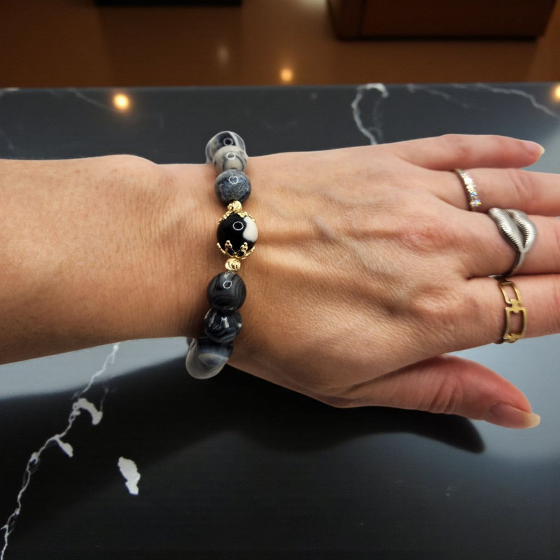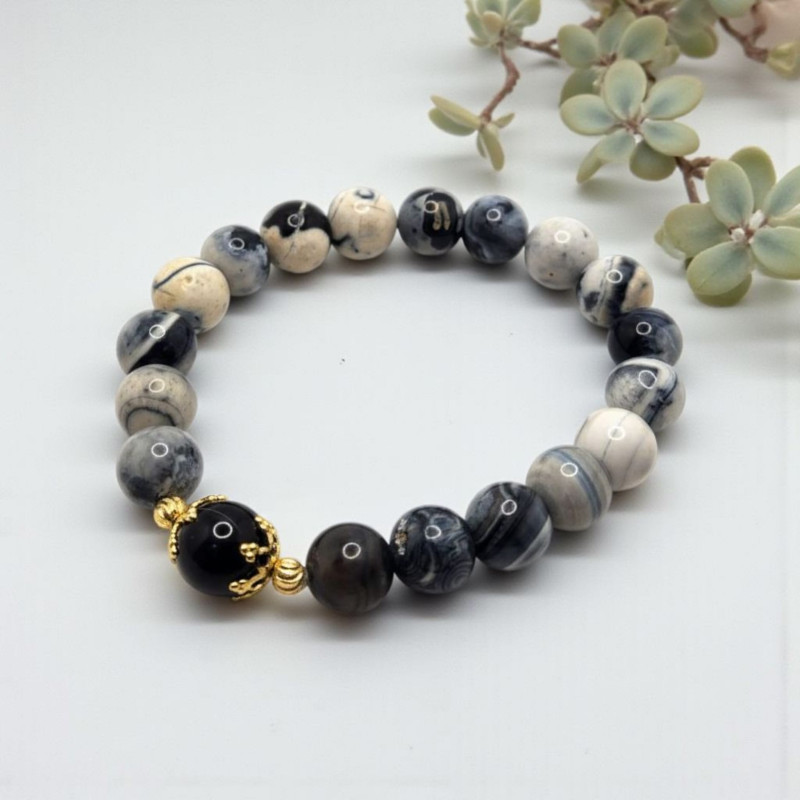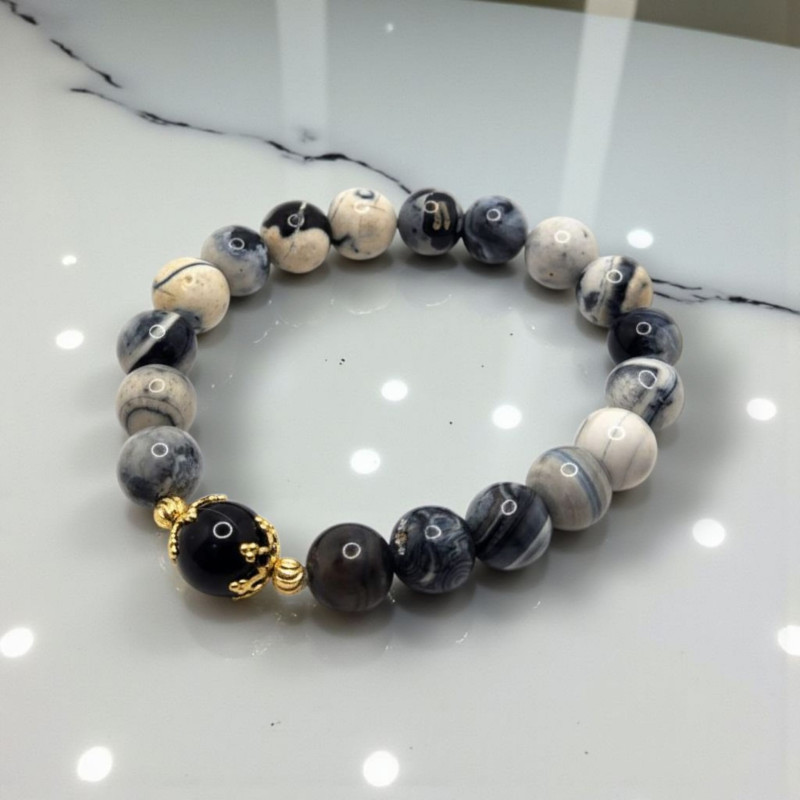 Black and White Agate is known for grounding the spirit and restoring emotional balance — a perfect symbol of walking with faith through both joy and trial. Each bracelet is a wearable prayer of balance, courage, and divine alignment.