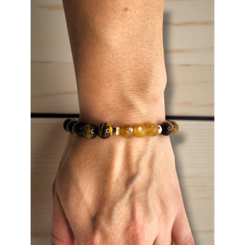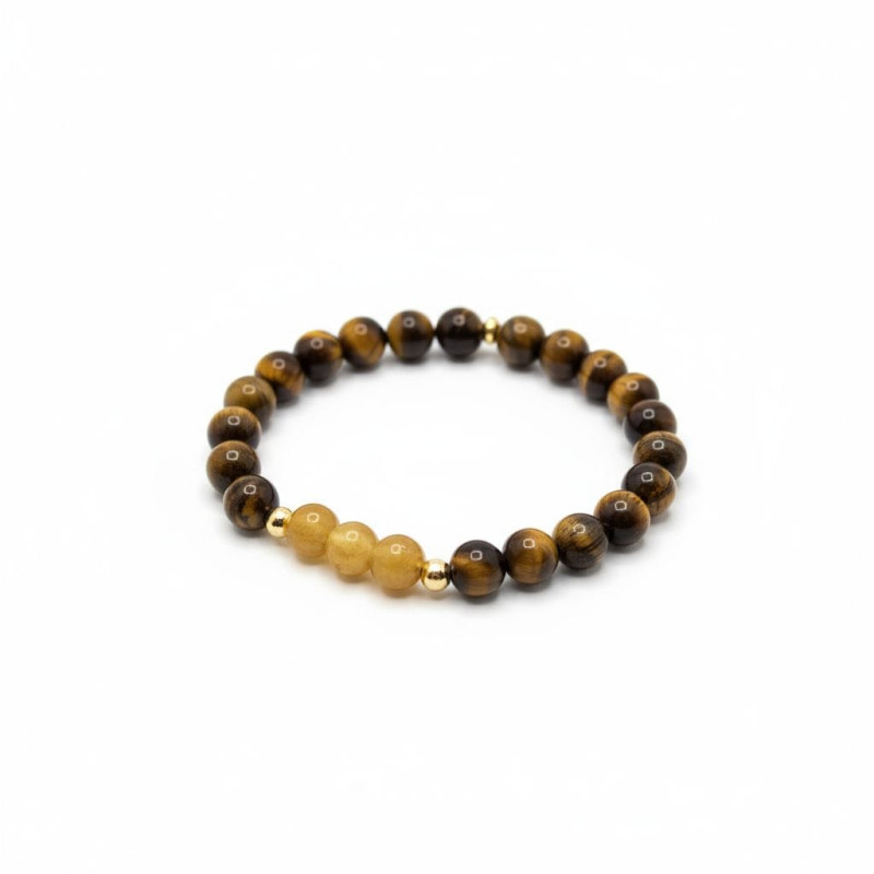 The Faithful Strength Bracelet is a bold symbol of endurance, faith, and divine confidence. Handcrafted with 8 mm natural brown Tiger Eye stones, it reflects grounding energy, wisdom, and the strength that comes from trusting God’s guidance. At its heart, three faceted Honey Tiger Eye beads radiate golden warmth, representing faith refined through light — the moments when God turns trials into triumph. Two golden spacer beads divide the tones, symbolizing the divine presence that separates fear from faith, and darkness from light.