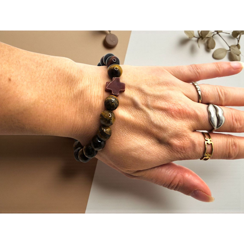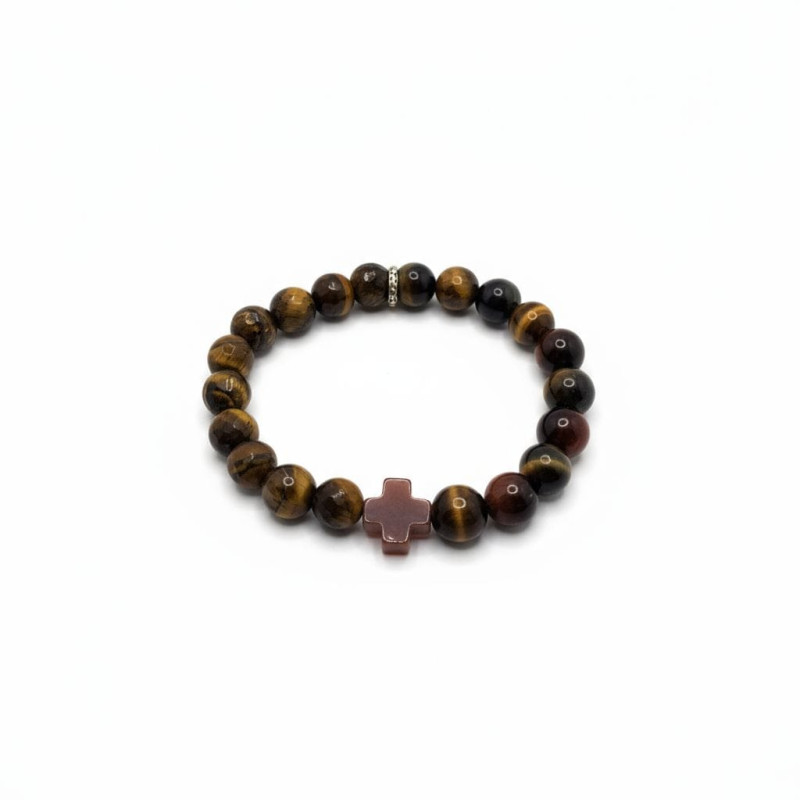 Fire of Faith Bracelet - 10 mm Tiger Eye with Red Agate Cross