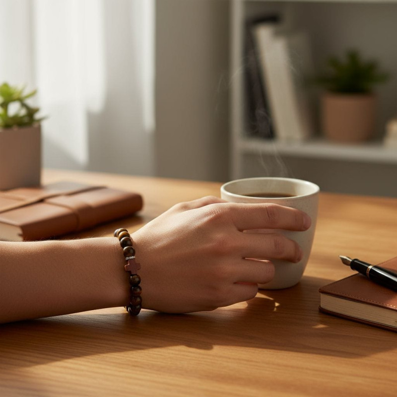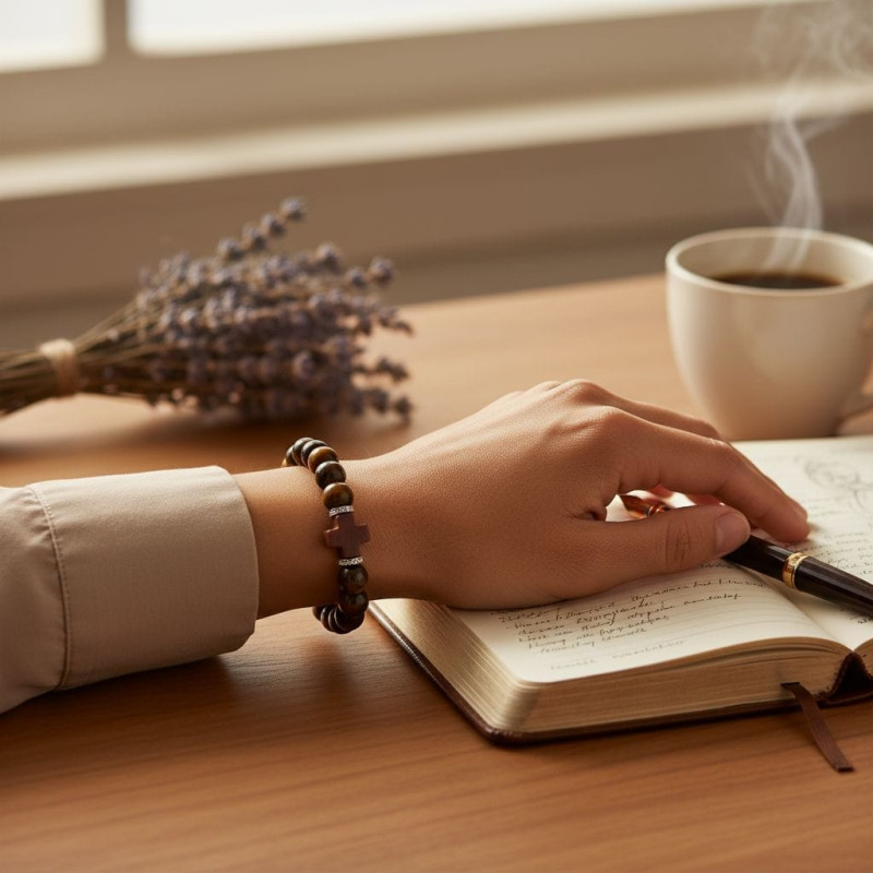 The Fire of Faith Bracelet is a bold expression of strength, courage, and unwavering devotion. Designed in a unisex style, it features powerful 10 mm Tiger Eye stones, known for their grounding energy and reflection of divine protection. At its center rests a striking Red Agate curved cross bead, symbolizing the fire of the Holy Spirit and the passion to follow Christ with a steadfast heart.