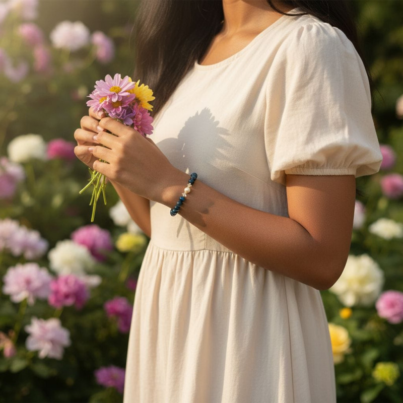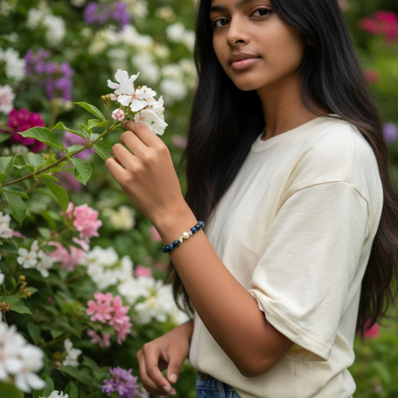 The Grace & Clarity Bracelet blends strength, elegance, and divine insight into a single inspiring piece. Featuring 8 mm Blue Tiger Eye stones, this bracelet encourages focus, courage, and trust in God’s guidance. At its heart sits a luminous Peach Freshwater Pearl, symbolizing God’s grace and the beauty of a heart surrendered to Him, flanked by two sparkling Czech Crystals and golden accents that reflect His light and blessings.