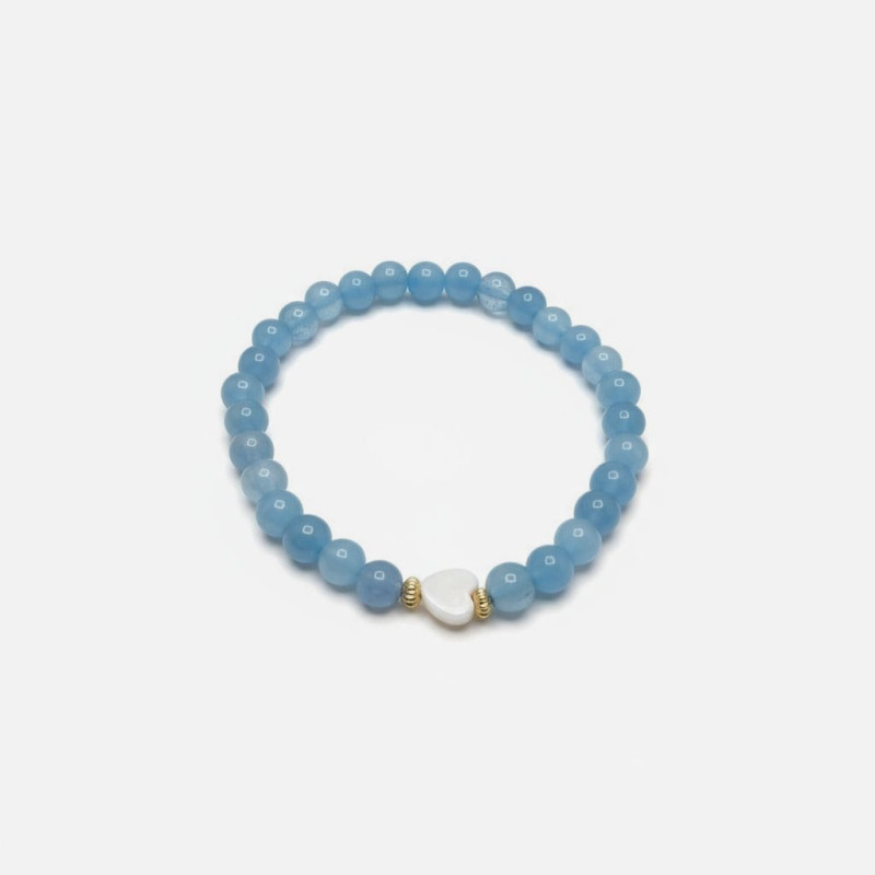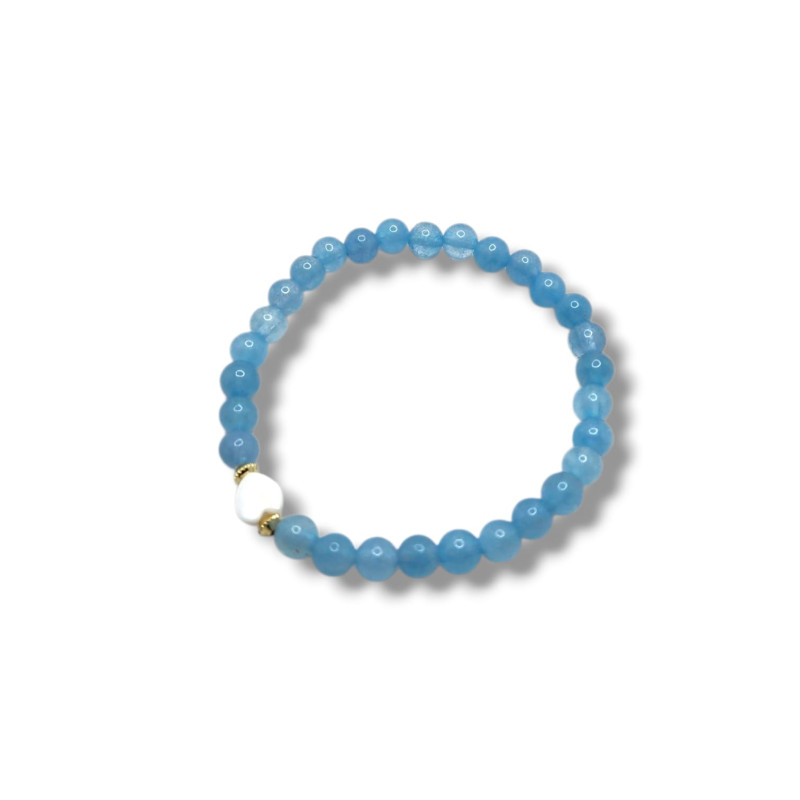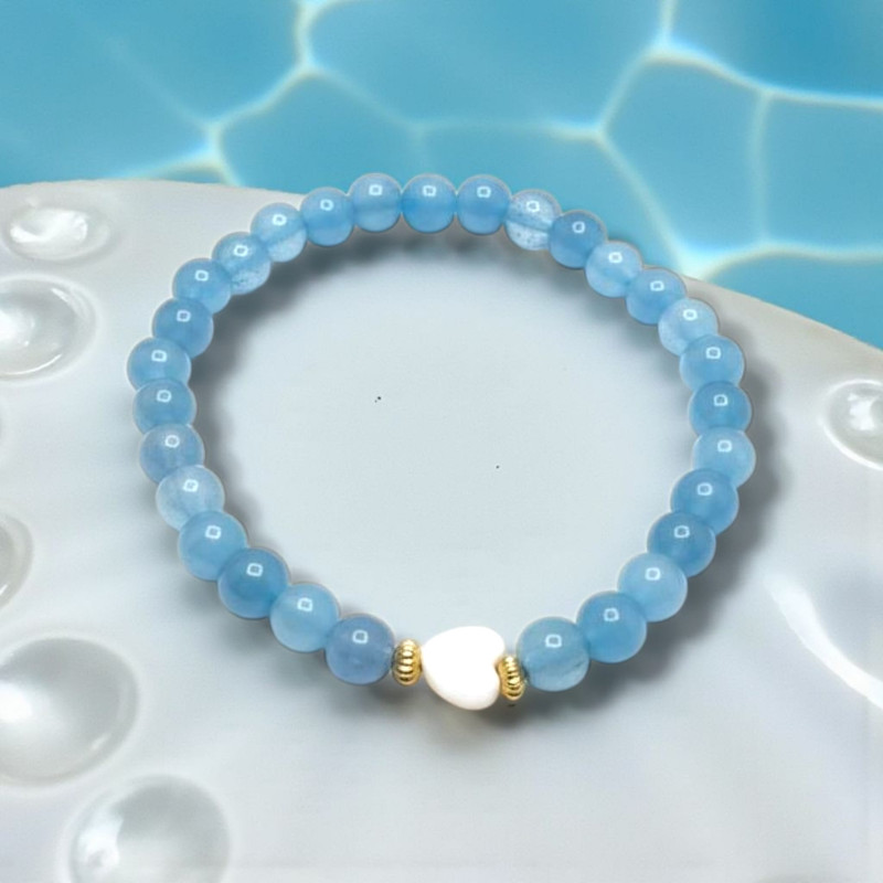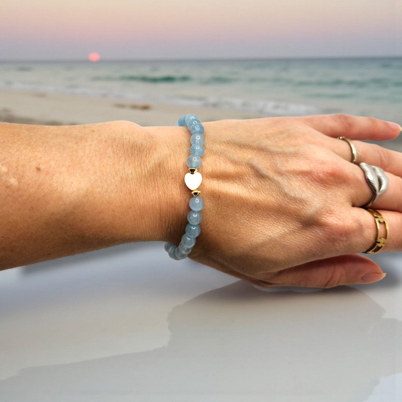 Heart of Heaven Bracelet - 6 mm Aquamarine with Mother of Pearl heart