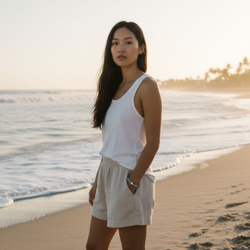 The Heart of Heaven Bracelet is delicately handcrafted with soothing 6 mm Aquamarine beads — stones of peace, faith, and divine clarity. At its center shines a radiant heart-shaped White Mother of Pearl bead, symbolizing the purity of God’s love, framed by two golden Stainless Steel beads representing His eternal light and protection.
