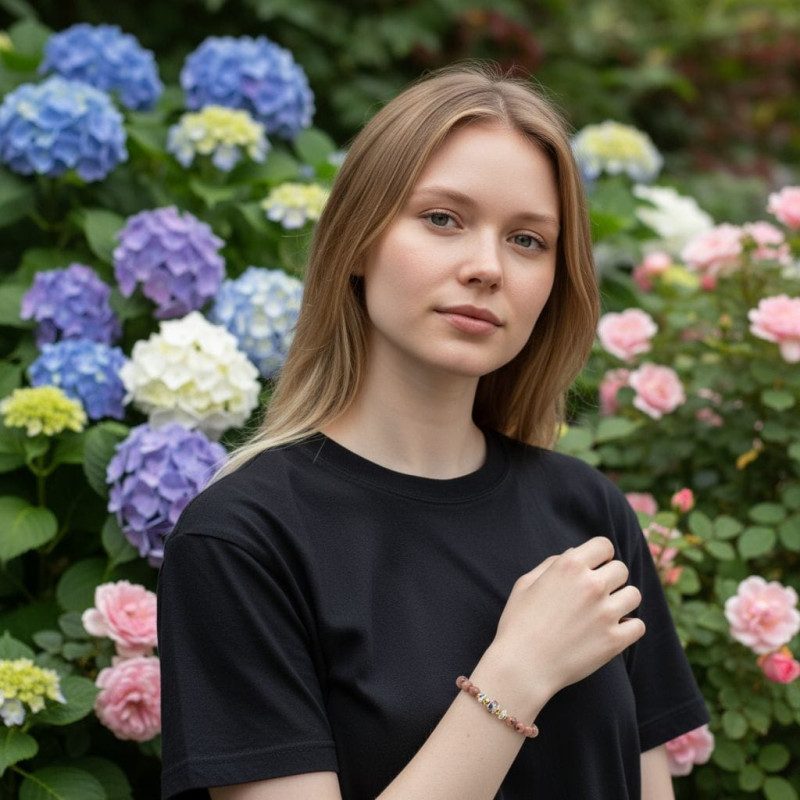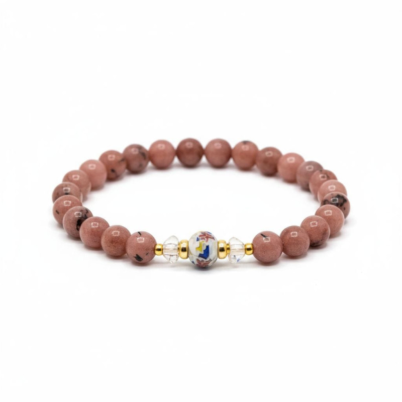 The Heavenly Whisper Bracelet captures the tender stillness of God’s presence — that quiet peace that speaks gently to the heart. Each soft 6 mm Pink Opal bead glows with a soothing blush tone, known to bring emotional healing and calm. In the center, a luminous Murano-style glass bead reflects shifting light like a whisper from heaven, framed by two radiant Czech Crystals symbolizing divine guidance and purity.