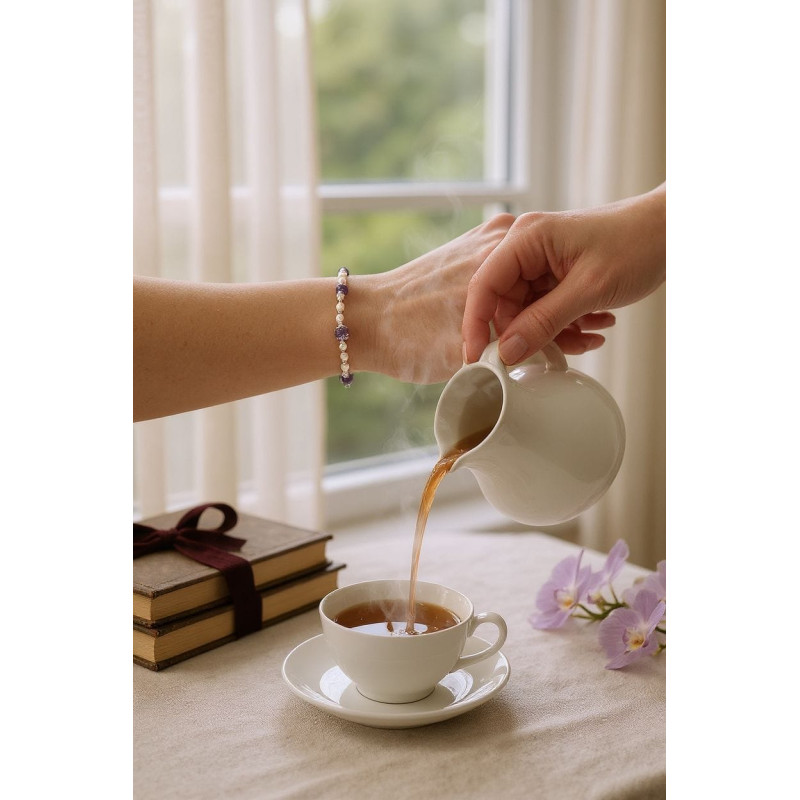The Heavenly Wisdom Bracelet is a delicate reflection of divine understanding and purity of heart. Designed to inspire spiritual clarity and inner peace, it combines the soft glow of Freshwater Pearls with the royal depth of Amethyst — a perfect harmony of grace and truth. Pearls remind us to keep our hearts pure before God, while Amethyst symbolizes a renewed and disciplined mind, rooted in His Word.