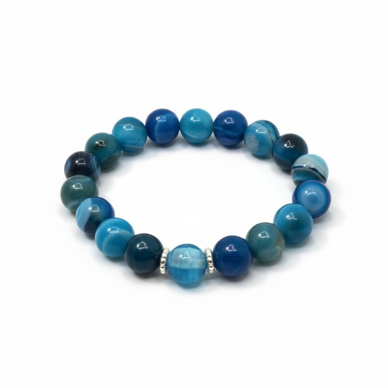 Heaven’s Whisper Bracelet Faceted Blue Lace Agate 10 mm with Murano-style Glass bead