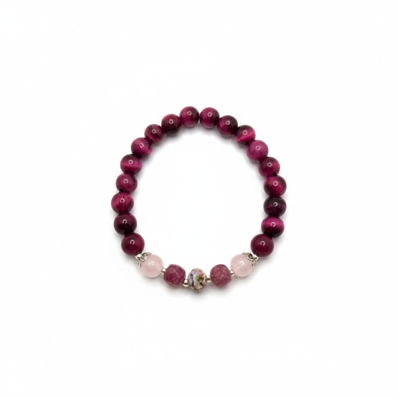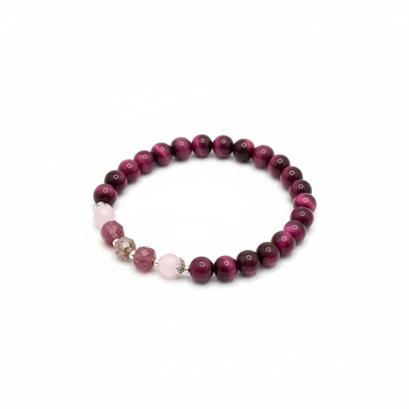 Joyful Heart Bracelet Pink Tiger Eye (8 mm), Rose Quartz, Faceted Strawberry Quartz