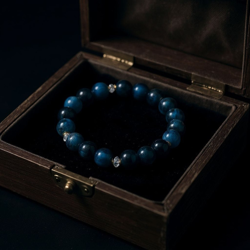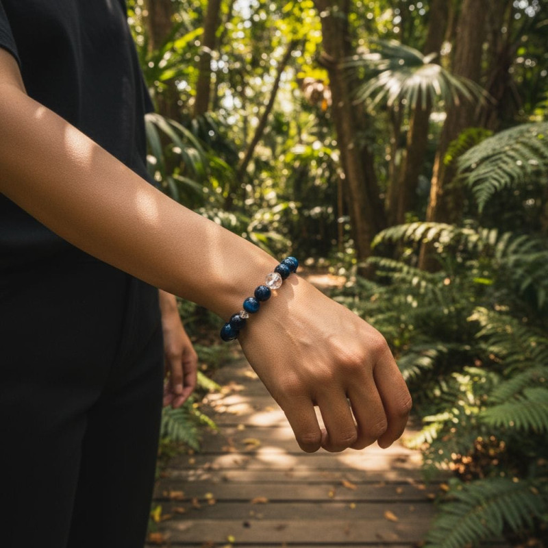 Kingdom Strength Bracelet Blue Tiger Eye (10 mm), Czech Crystals