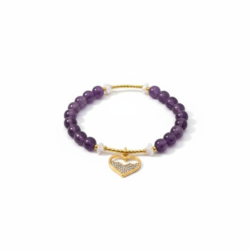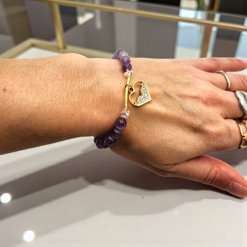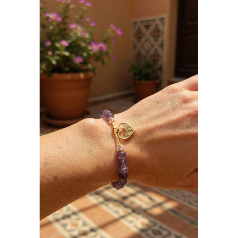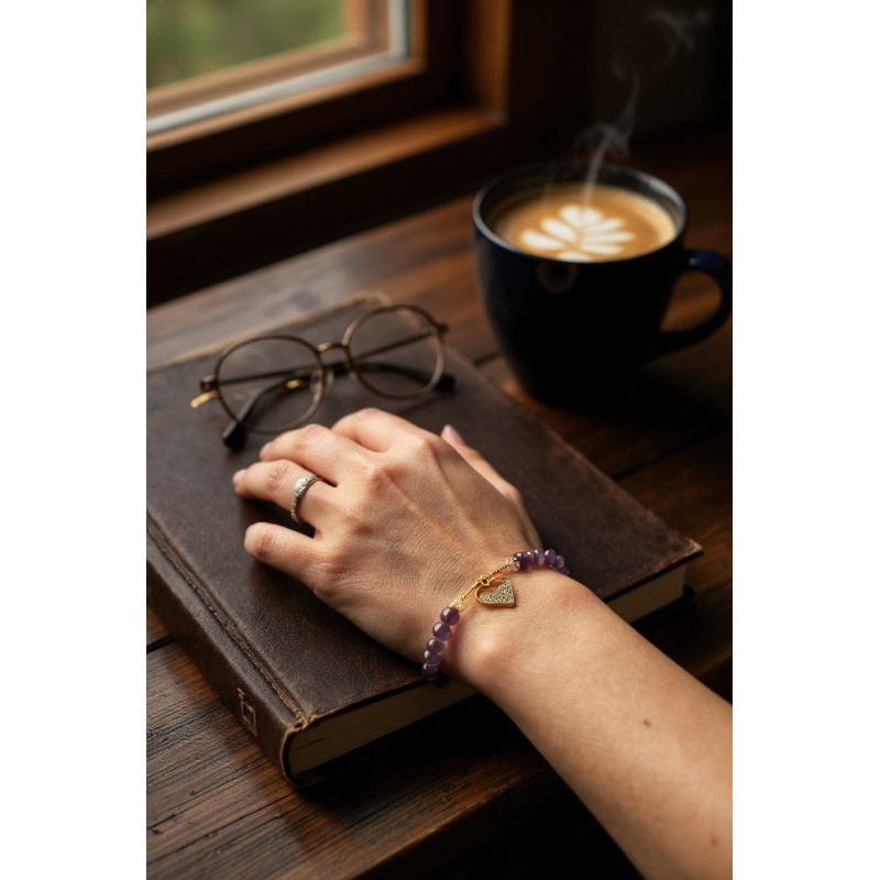 Embrace peace and spiritual clarity with the Heart of Serenity Amethyst Bracelet. Featuring calming 6 mm Amethyst beads, accented with elegant golden stainless steel dividers and sparkling Czech glass beads, this bracelet is a reminder of God’s gentle presence in your life. The golden stainless steel heart charm symbolizes love, faith, and the serenity that comes from trusting in His plan. Wear it daily as a tangible reminder to anchor your heart in God’s peace and to walk each day in His love.