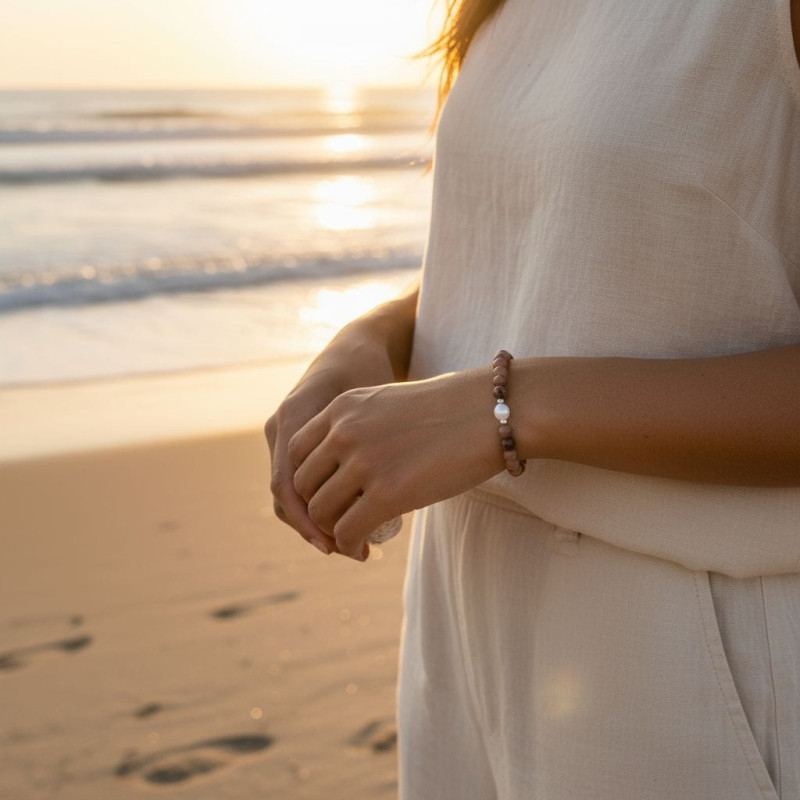 The Pure Heart Bracelet is delicately handcrafted with smooth 6 mm Pink Opal beads — known for their calming and loving energy — and adorned with a luminous White Mother of Pearl heart at the center. Two silver-tone Stainless Steel seed beads accent the heart, adding a touch of timeless elegance and durability.