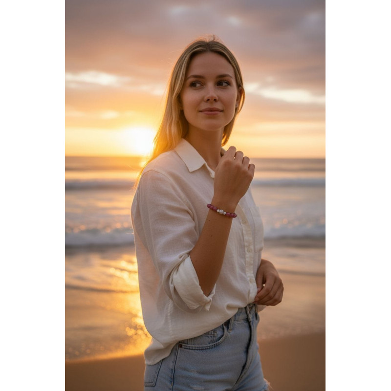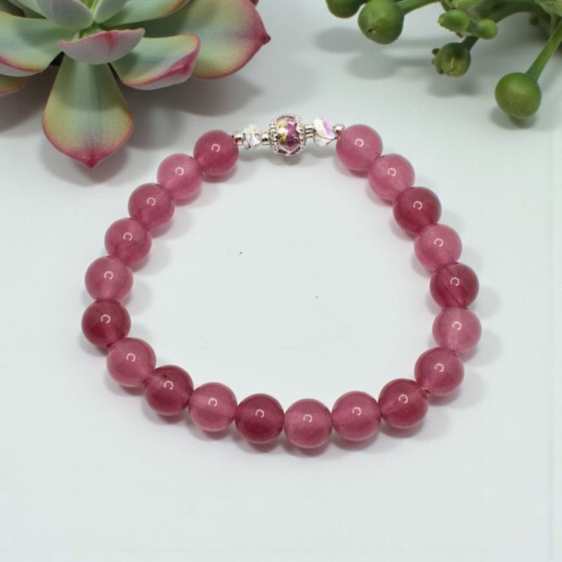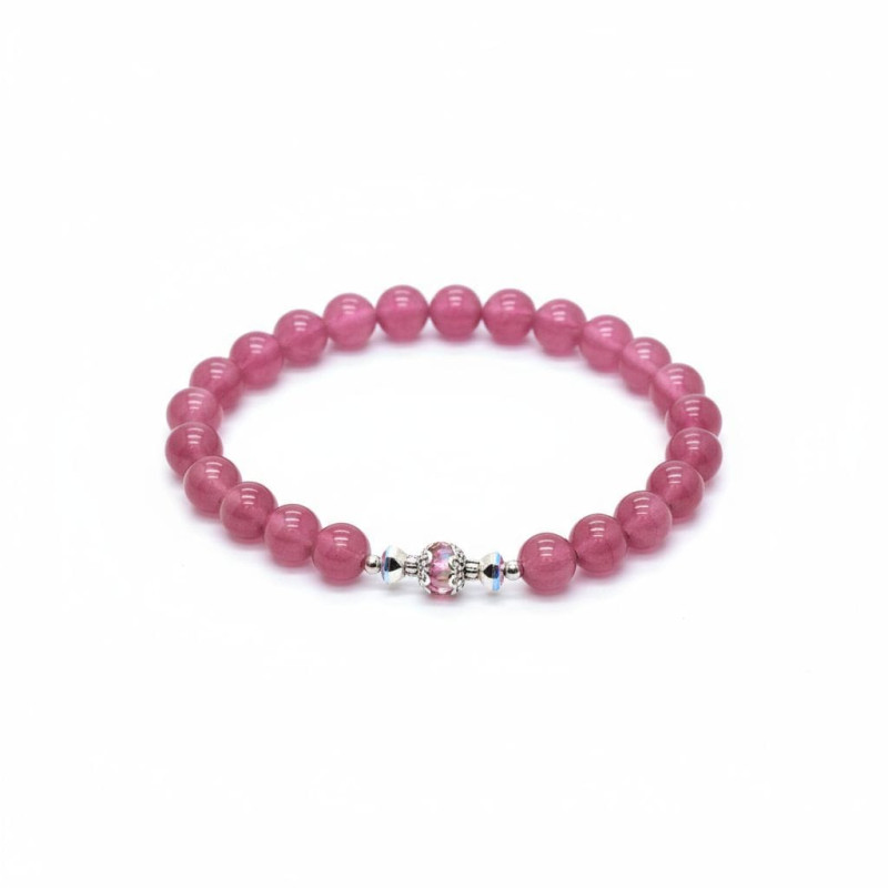 Radiant Faith Bracelet - 8 mm Strawberry Quartz with Murano-style bead