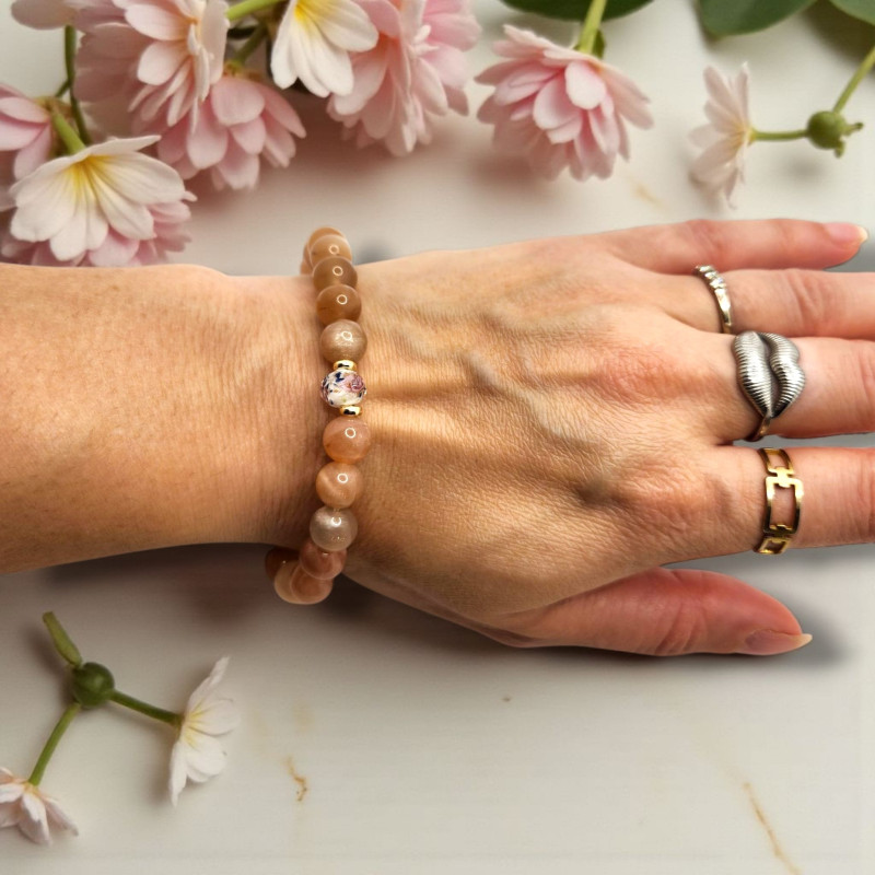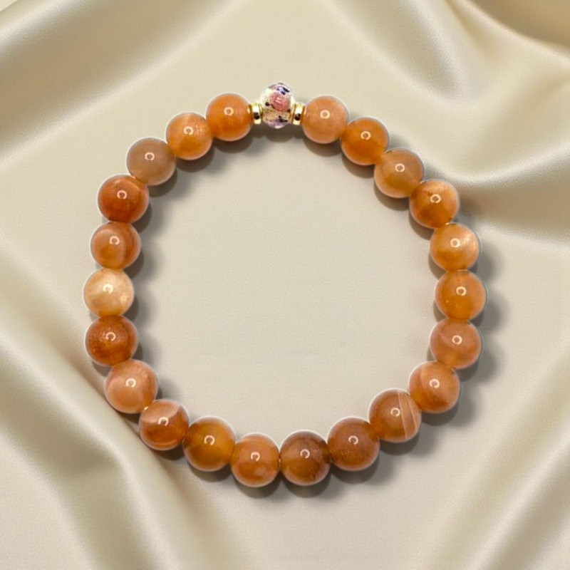 Light of Joy Bracelet - 8 mm Sunstone with Murano-style bead.