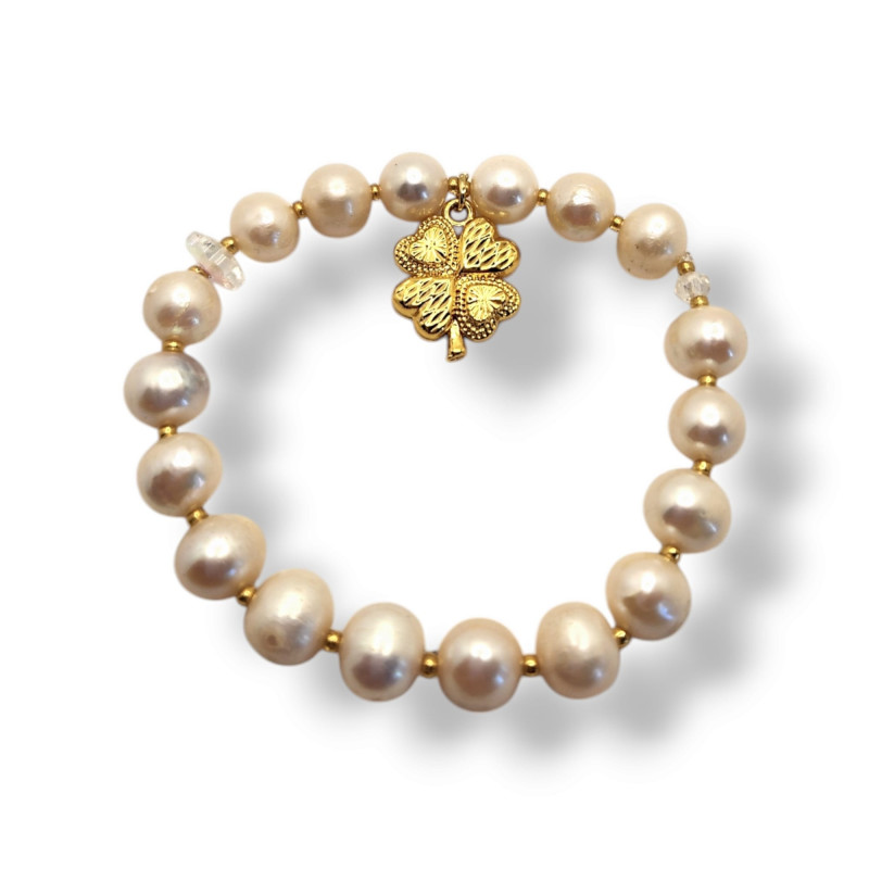 Embrace elegance and good fortune with our Serene Clover Pearl Bracelet! Featuring luminous Freshwater Pearls and a delicate Gold-Plated Clover Charm, this bracelet is a symbol of grace, harmony, and luck. Whether you're dressing up for a special occasion or adding a touch of sophistication to your everyday look, this timeless piece is the perfect accessory.
