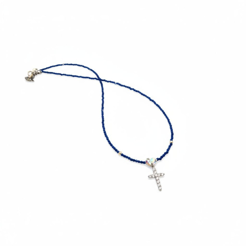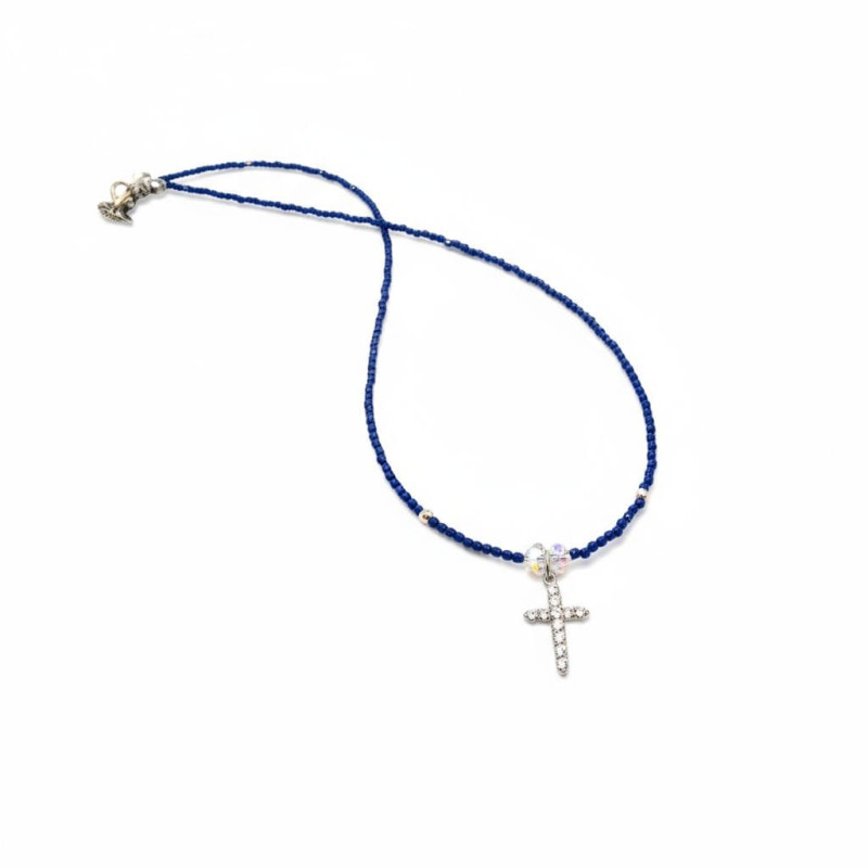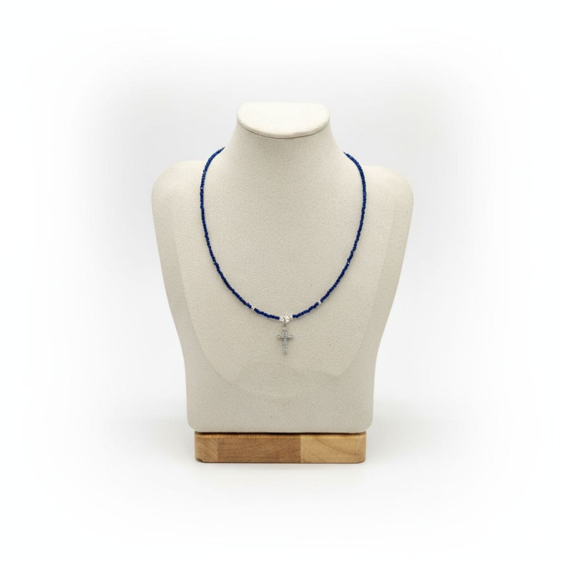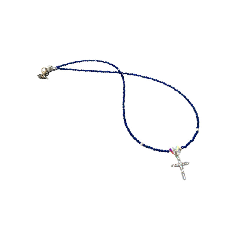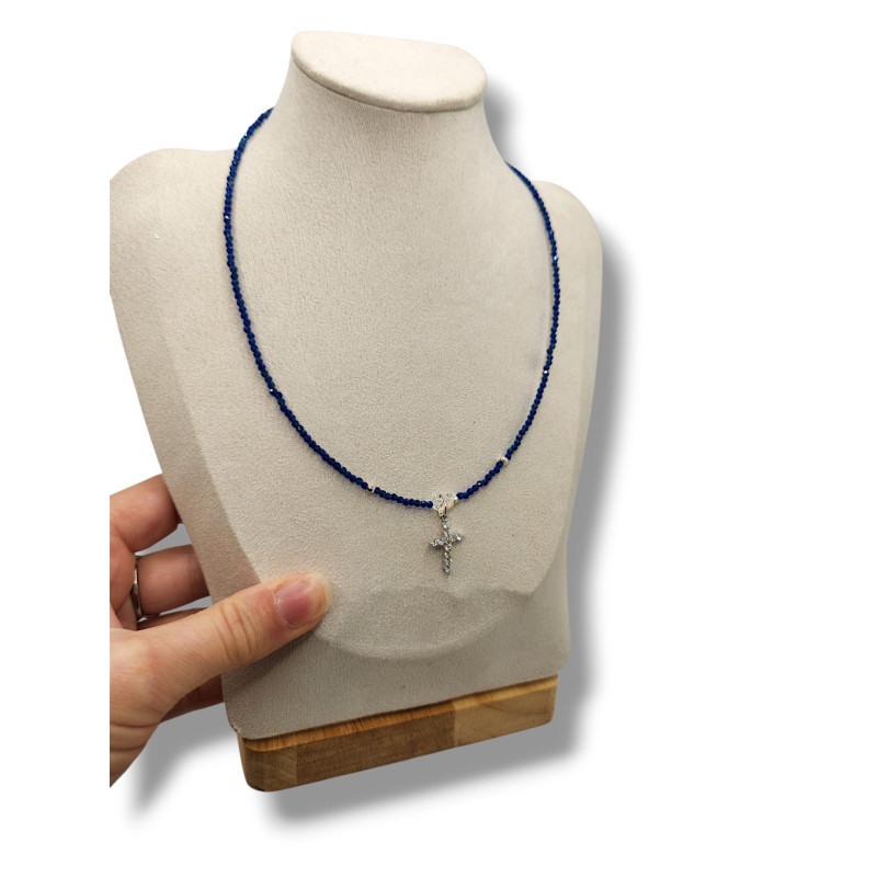 Faith & Brilliance Necklace - 2 mm Faceted Royal Blue Czech Crystal Necklace with small Cross charm