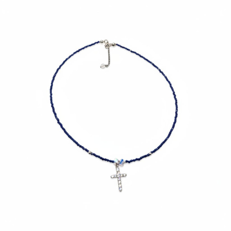 At the heart of this graceful design rests a small Zirconia Silver-tone Stainless Steel Cross charm, sparkling with purity and grace. The Cross symbolizes unwavering trust in God’s guidance, while the royal blue tones evoke serenity, wisdom, and spiritual strength.