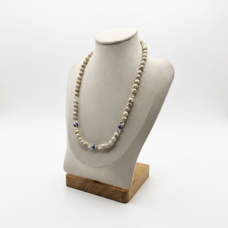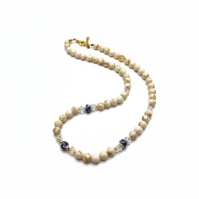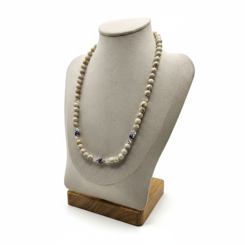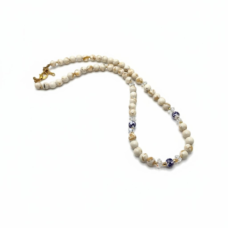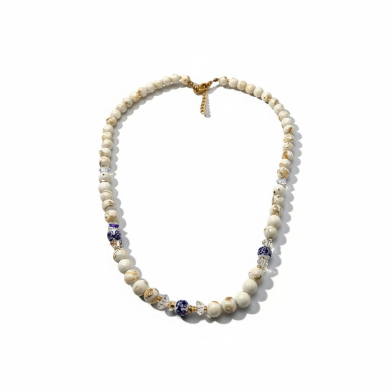 Celestial Grace Necklace - 8 mm Mother of Pearl and Porcelain beads