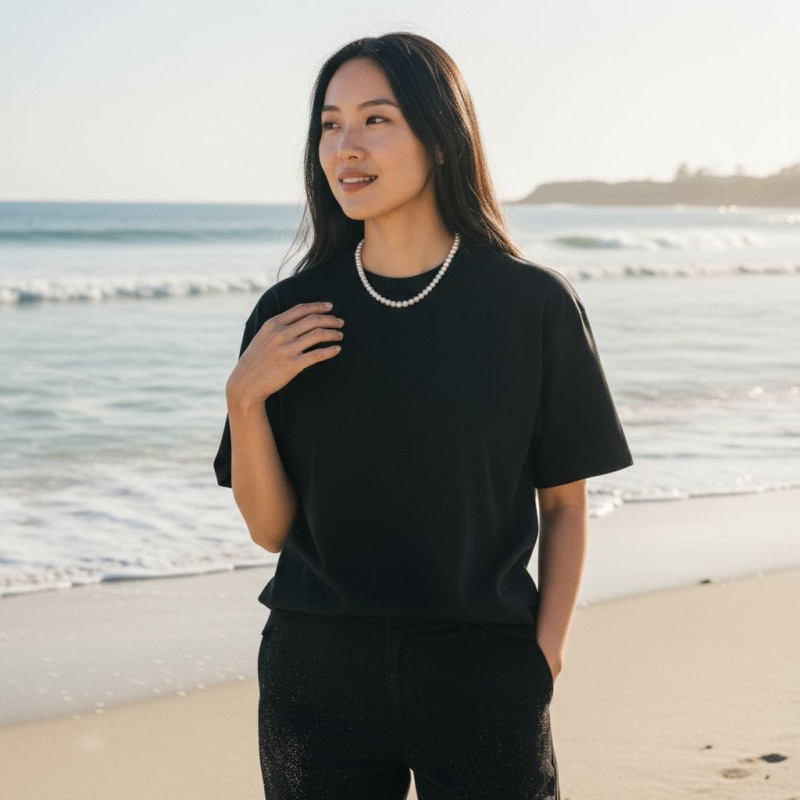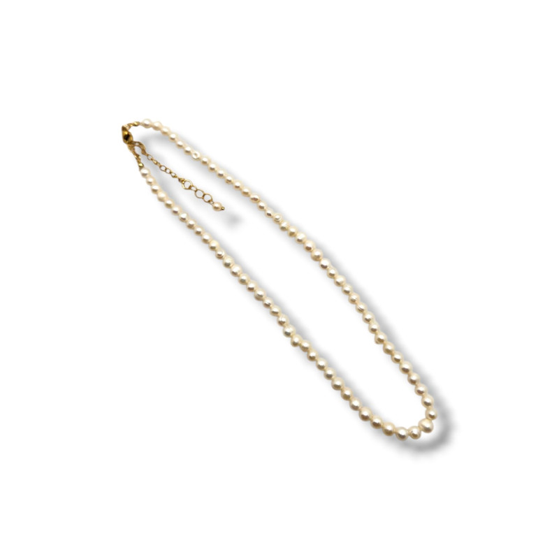 The Eternal Elegance Pearl Necklace embodies the purest form of timeless sophistication. Each perfectly round 6–7 mm Freshwater Pearl shines with gentle luster, symbolizing purity, wisdom, and divine grace. Finished with a polished golden lobster clasp, this necklace is a celebration of enduring beauty — elegant, refined, and forever classic. Whether worn alone or layered, it carries an air of faith and confidence that transcends trends.