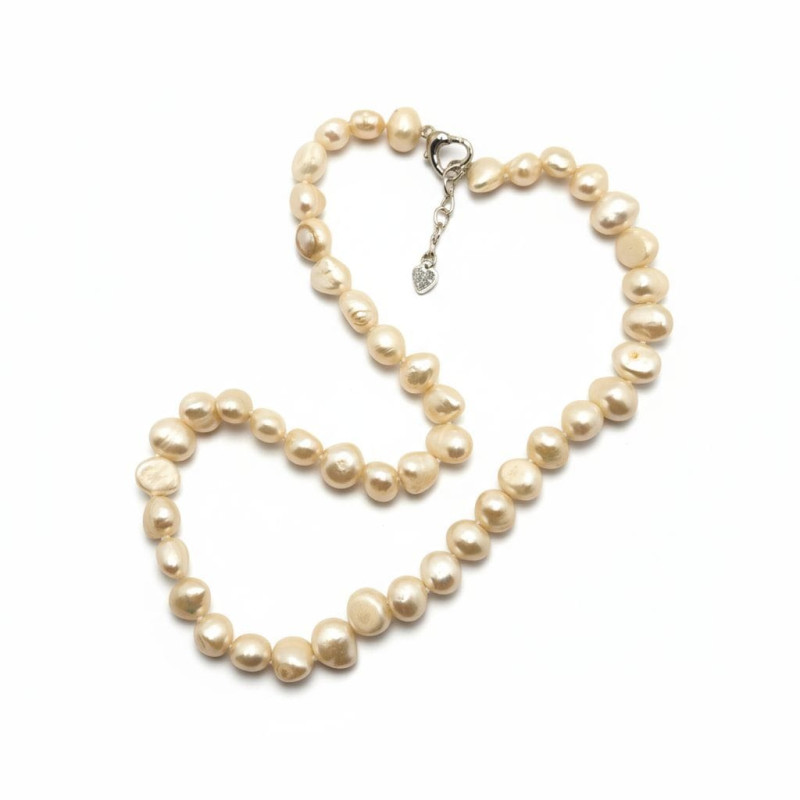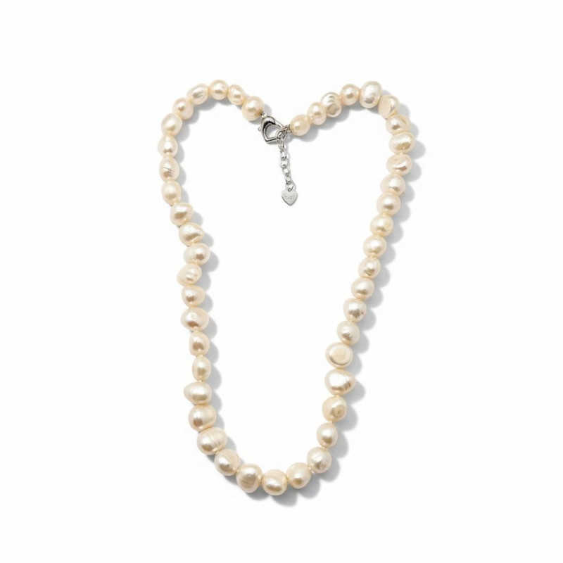 The Eternal Grace Pearl Necklace embodies the beauty of imperfection and the timeless elegance of faith. Featuring lustrous 10–12 mm white Freshwater Pearls in their natural, irregular shapes, each pearl reflects light in a way that feels pure and divinely inspired. The design is completed with a polished silver-tone Stainless Steel heart clasp — a symbol of love, devotion, and divine connection. With its organic texture and classic charm, this 17-inch necklace (plus 1.5-inch extender) gracefully complements any outfit, celebrating both sophistication and sincerity.