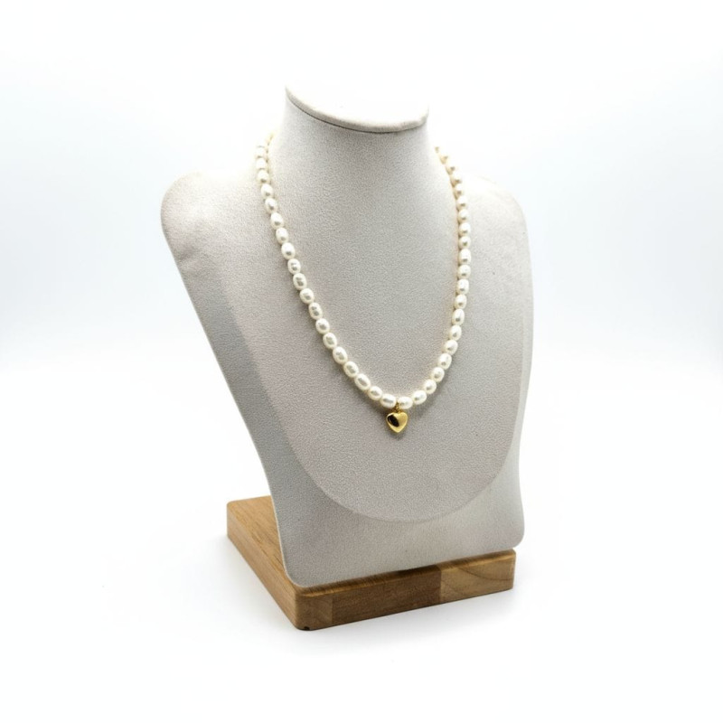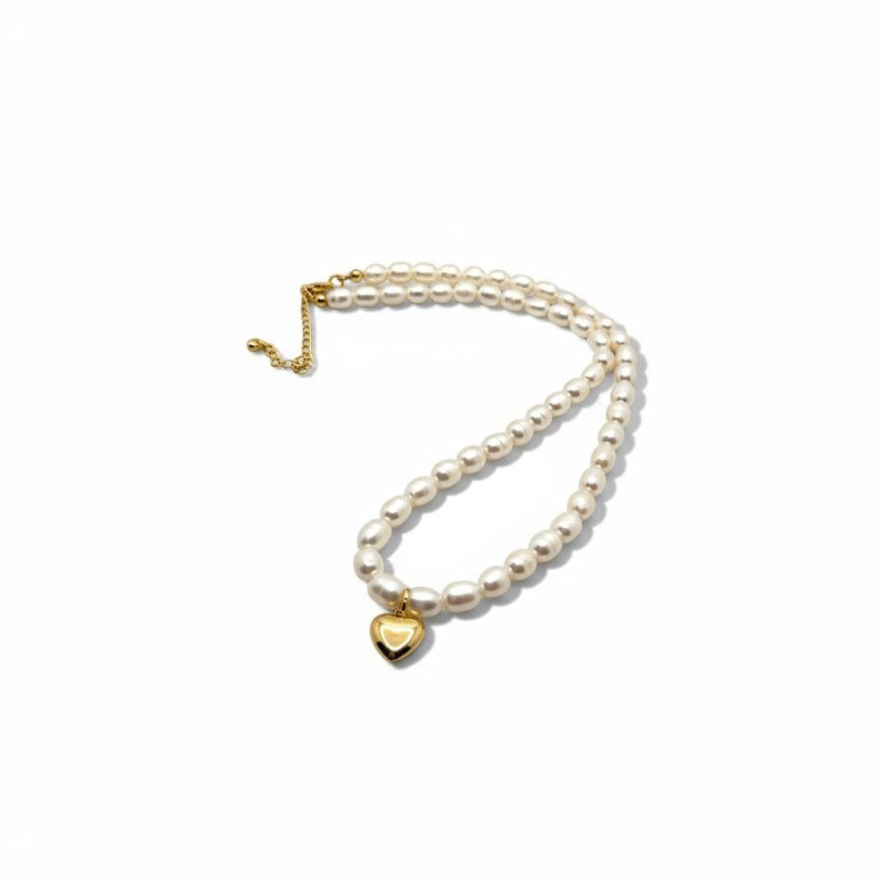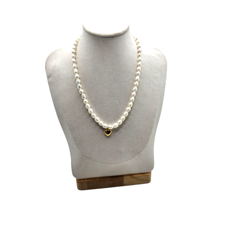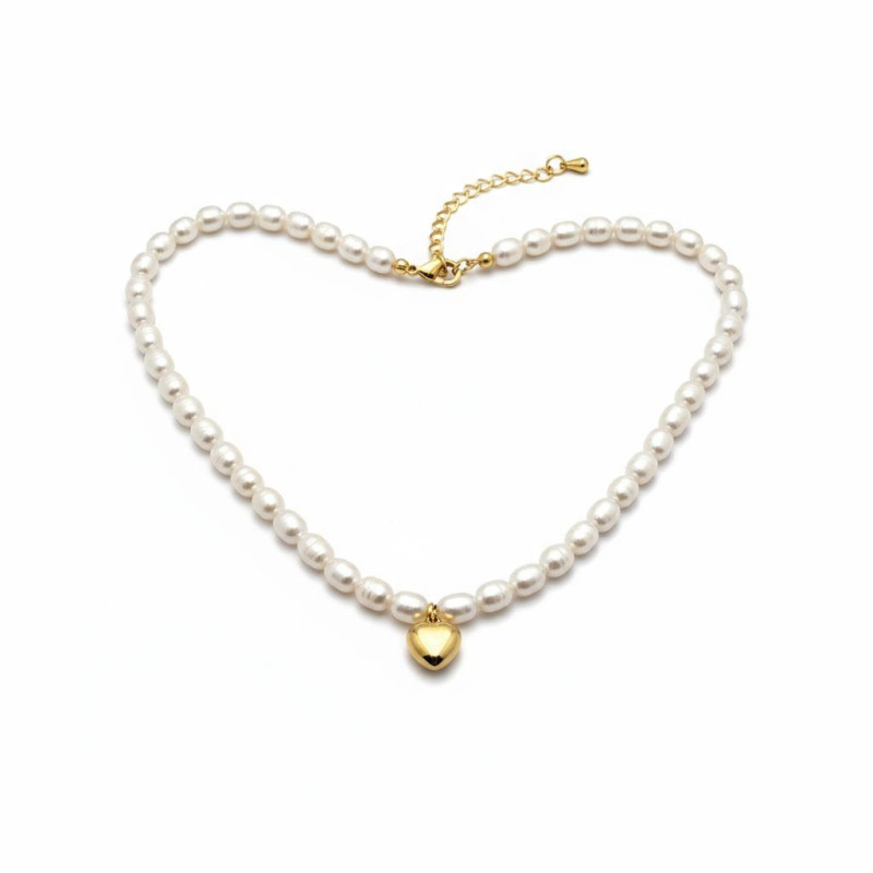 Heavenly Heart Pearl Necklace - 5 ~6 mm Freshwater Pearls with Gold Stainless Steel Heart Charm