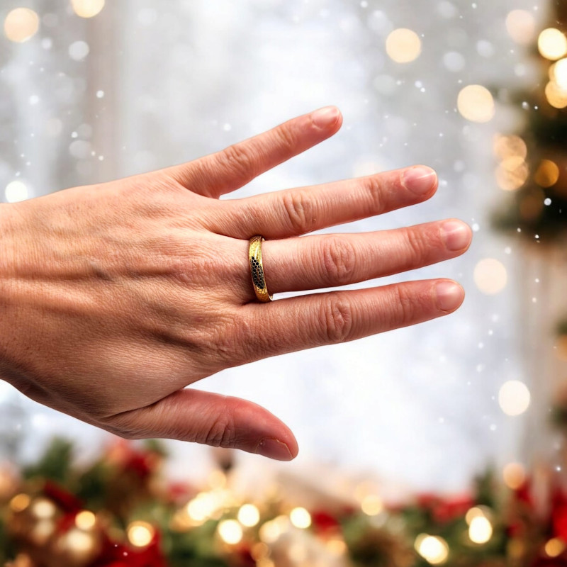Its sleek band design offers a comfortable fit, perfect for those looking to add a touch of mystique to their jewelry collection.